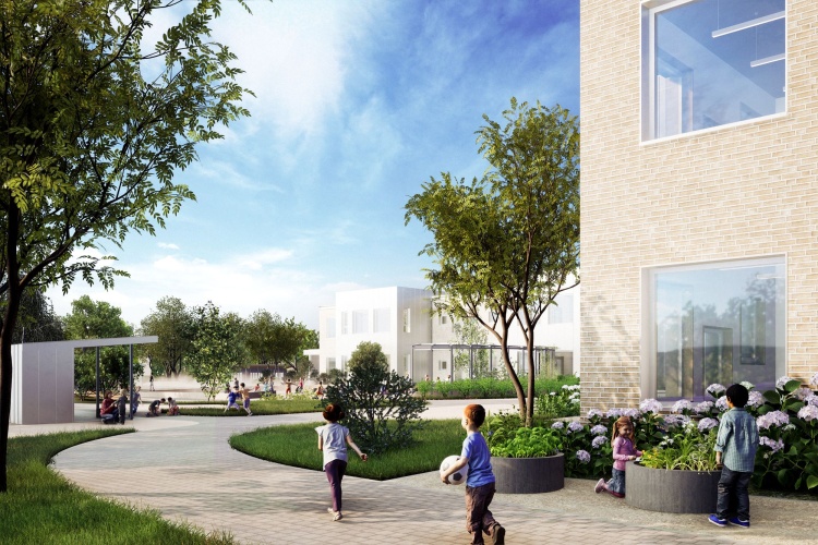 Teritorijas plānojumā uzsvērta droša gājēju plūsma, integrēts zaļais labiekārtojums un energoefektīvas inženiertehniskās sistēmas, tostarp siltumsūknis un lietusūdens izmantošana teritorijas zaļo augu laistīšanai kā arī lietusdārzu izveide, kas uzsūc, filtrē lietusūdeni un mazina slodzi uz kanalizācijas sistēmām. Ēku arhitektoniskie un tehniskie risinājumi nodrošina gan ilgtspēju, gan estētisku iekļaušanos vidē.