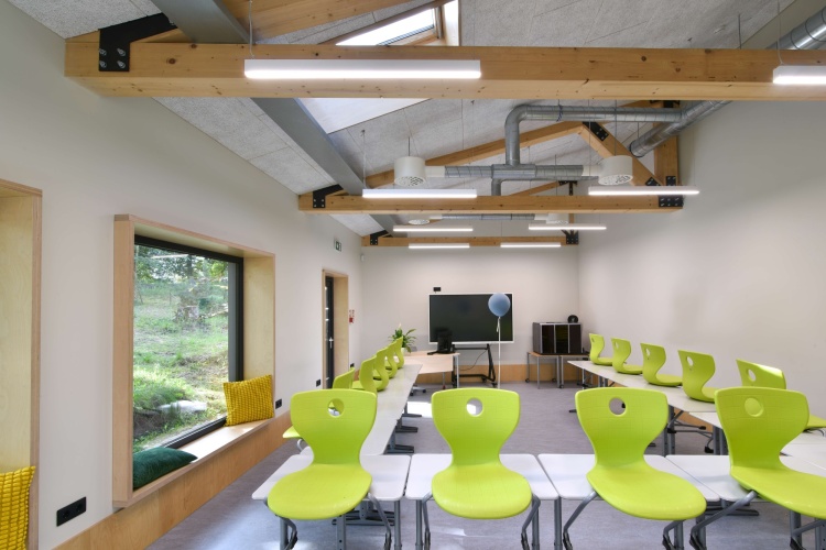Jaunbūve paredzēta kā esošās skolas papildinājums, pilnībā izmantojot doto zemesgabalu normatīvi atļautajās robežās un veidojot nelielu pagalmu starp ēkām. Iecerei plānotas divas kārtas. Šobrīd realizēta 1.kārta zemesgabala dziļumā blakus esošajai skolas ēkai, izbūvēti teritorijas inženiertīkli, kā arī iekārtas, lai apkalpotu ēku kopumā. Ēka veidota no koka kolonnu karkasa, koka kopnēm jumta konstrukcijai un koka karkasa ar siltumizolāciju, lai nodrošinātu ātru montāžu un labu mikroklimatu klašu telpās, kā arī izmantojot ēku, tās konstrukcijas un inženiertehniskos risinājumus skolēnu izglītošanai par ekoloģiskas un ilgtspējīgas būvniecības principiem.