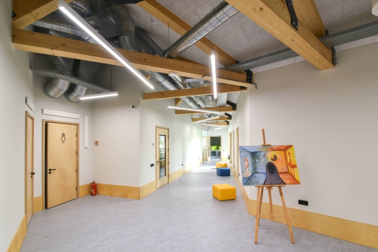 1.kārtas telpu kopējā platība 360 m2 - trīs klašu telpas, skolotāju kabinets, tehniskā telpa, sanmezgli.