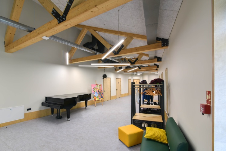 2.kārtas telpu kopējā platība 386 m2 - trīs klašu telpas, multifunkcionāla telpa (ēdamzāle/skolēnu atpūtas telpa starpbrīžos).
